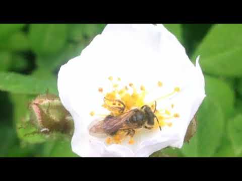 [KakaoTV 벅스라이프]A honeybee is sucking honey from a Rosa multiflora. 어리꿀벌, Colletes collaris, ミツバチモドキ, 擬蜜蜂, ハチ, 蜂, bee, 꿀벌